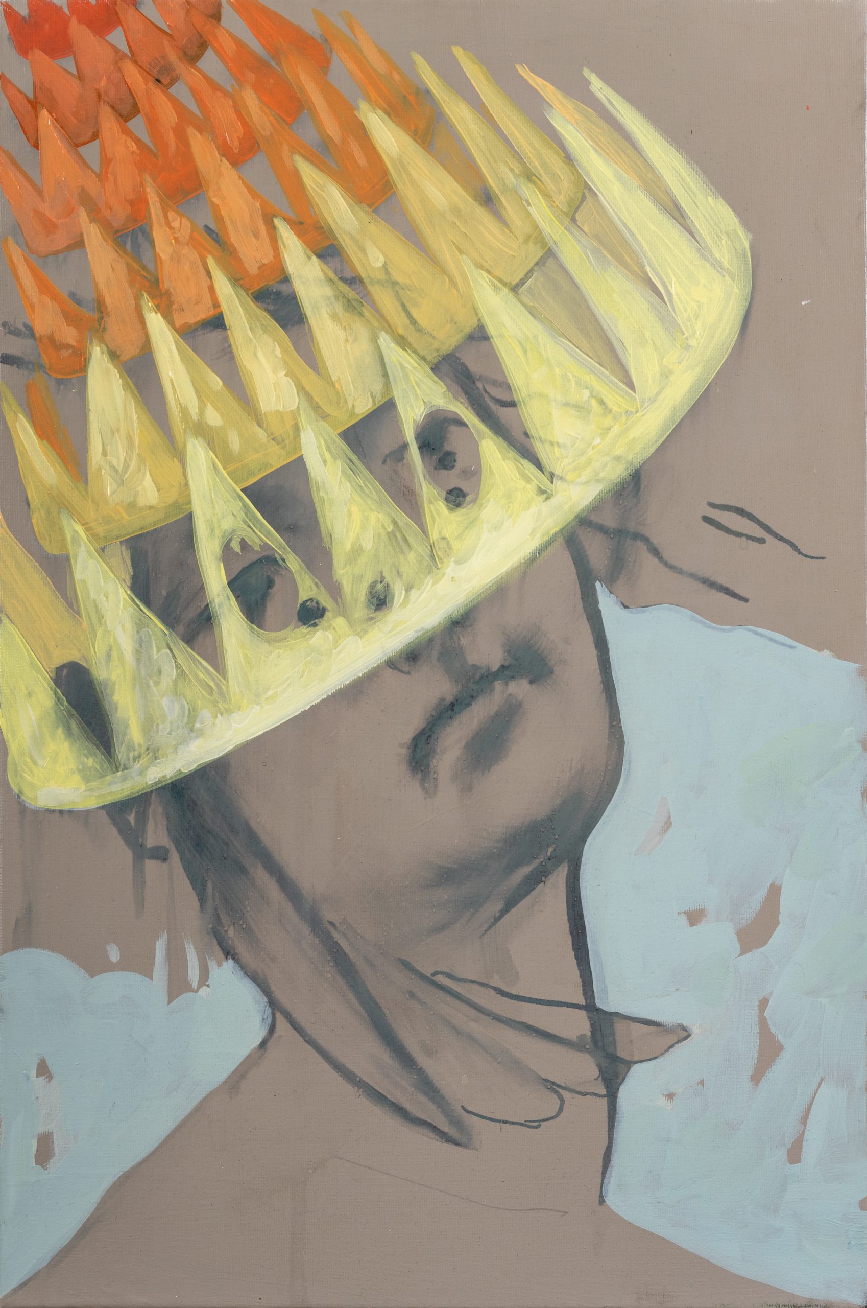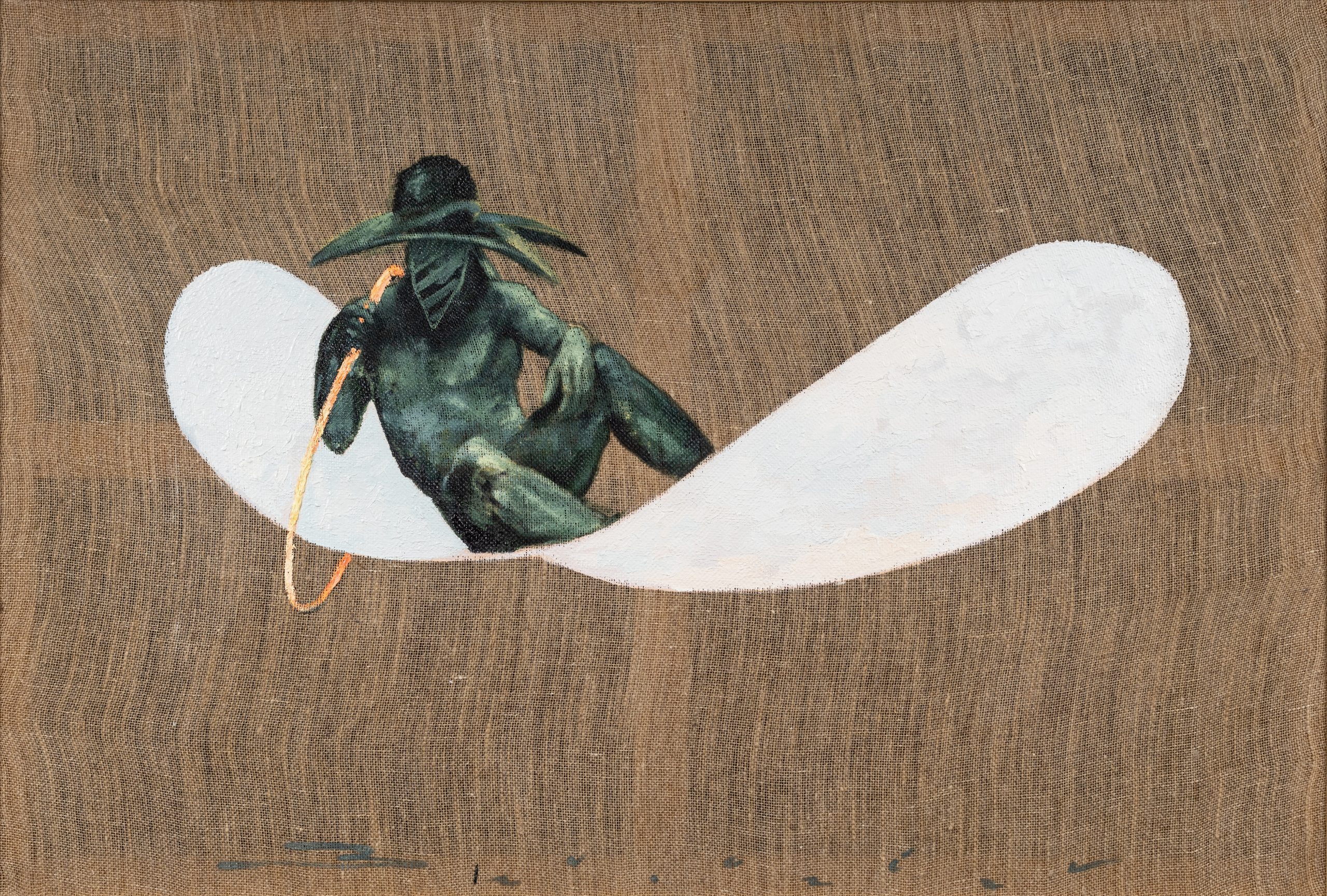 We could have started with “Mask transplant, incompatibility 0.1%”, a painting which measures “only” 50×40 cm, but which attacks head-on the subject of the mask and the passions awakened by its obligations during the pandemic.