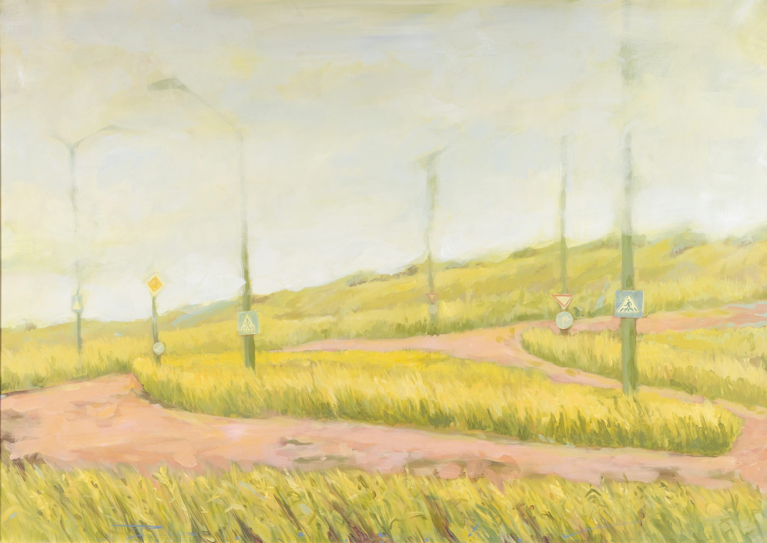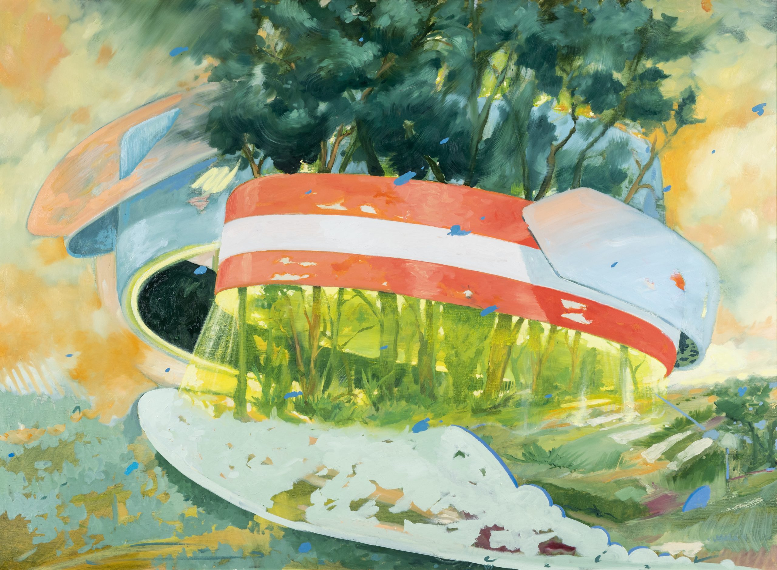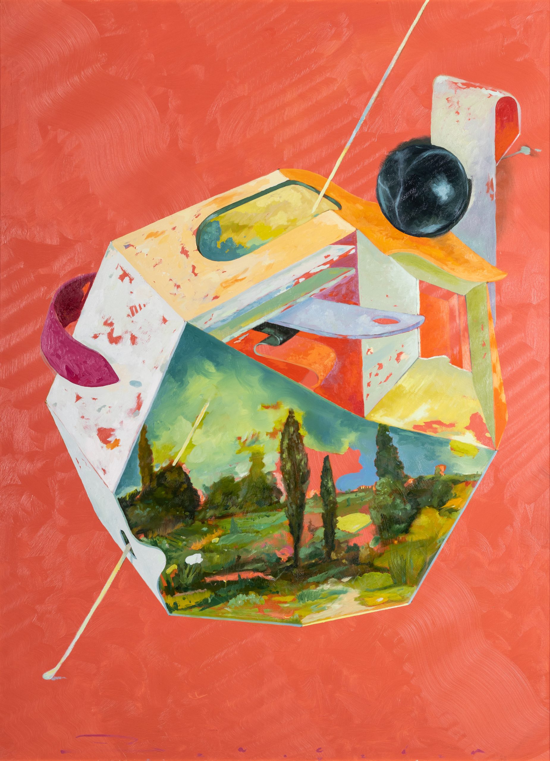 Or with “New Reality”, a round painting with a diameter of 170 cm that offers us, as if through a magnifying glass, the perspective of a world in which surrealism lost its definition by being confused with the new realism.
