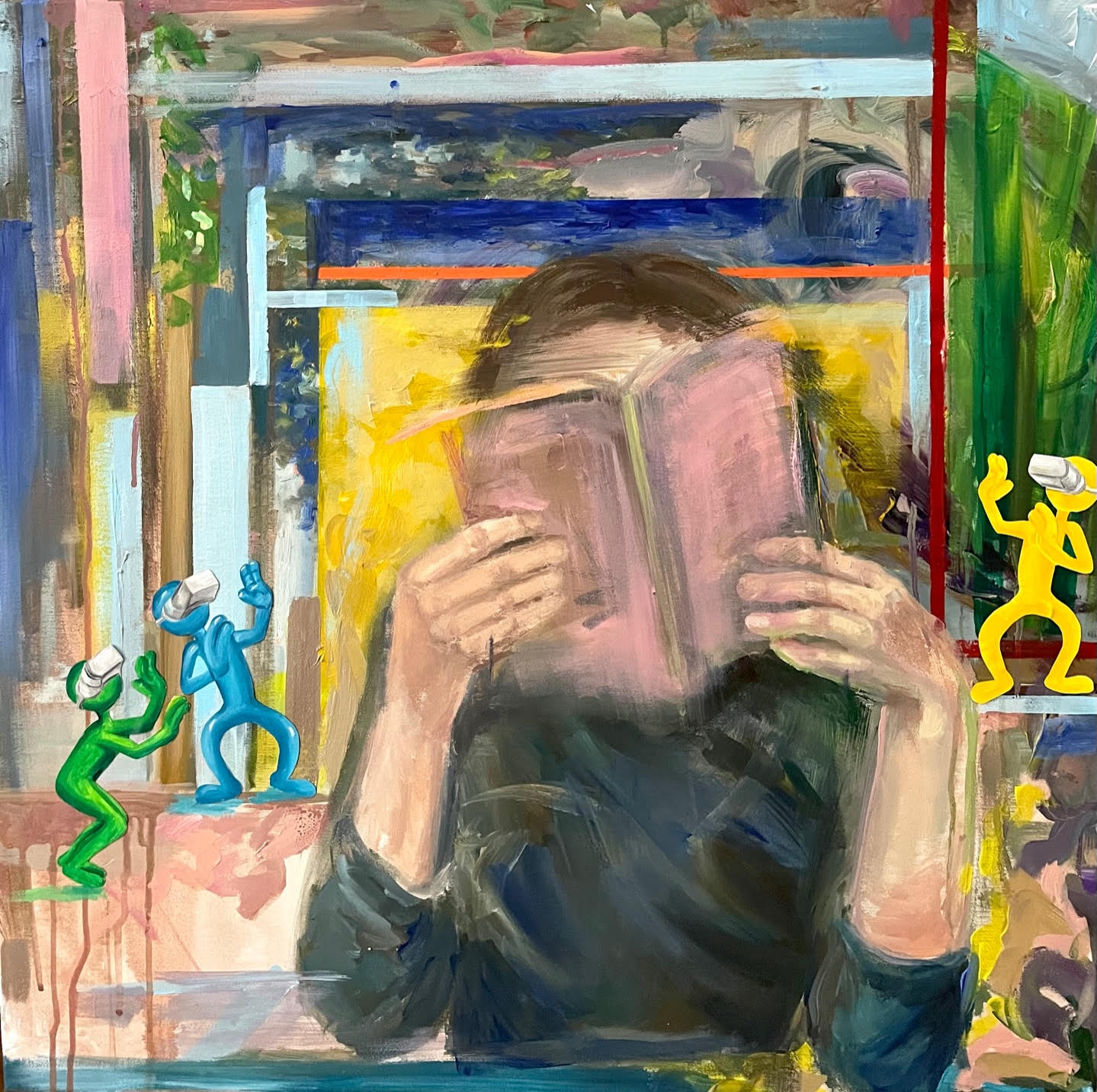 Regardless of the subject, Arina Bican “solves” it through the figurative. There are no works from which people, faces or gestures are absent. Well, strictly speaking, the works really consist of silhouettes, as we see in the case of the clay figurines, made in 2021 (Green Omulet VR and Blue Omulet VR). The portraits executed much more realistically at the beginning, in 2014, lose over time their appetite for photorealism and relax in small bursts of surrealism or expressionism, but without ever falling into the abstract or the schematic. The details remain essential, like their precise execution, only they have migrated around the anatomical, in the folds of clothes or in the shape of the surrounding objects.